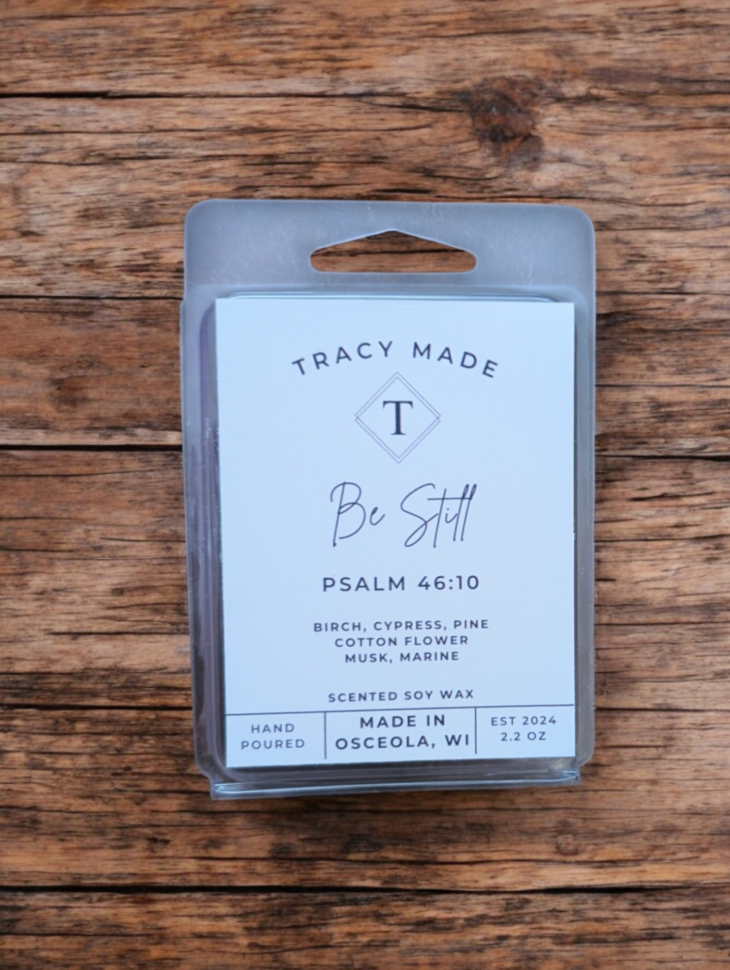 Experience serenity and calm with the Be Still Wax Melt, inspired by the comforting promise of Psalm 46:10: "Be still, and know that I am God." Crafted with a premium soy wax blend, this wax melt gently releases a soothing aroma that transforms your space into a haven of peace and reflection. Designed for use in your favorite wax warmer, each melt invites you to pause, meditate, and embrace the tranquility of God's presence.