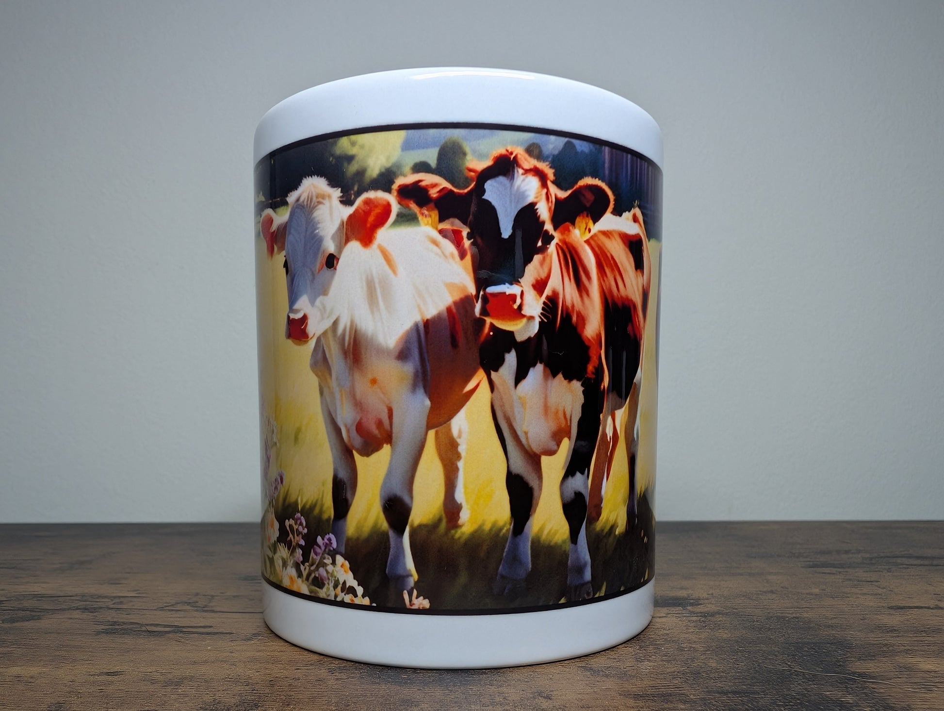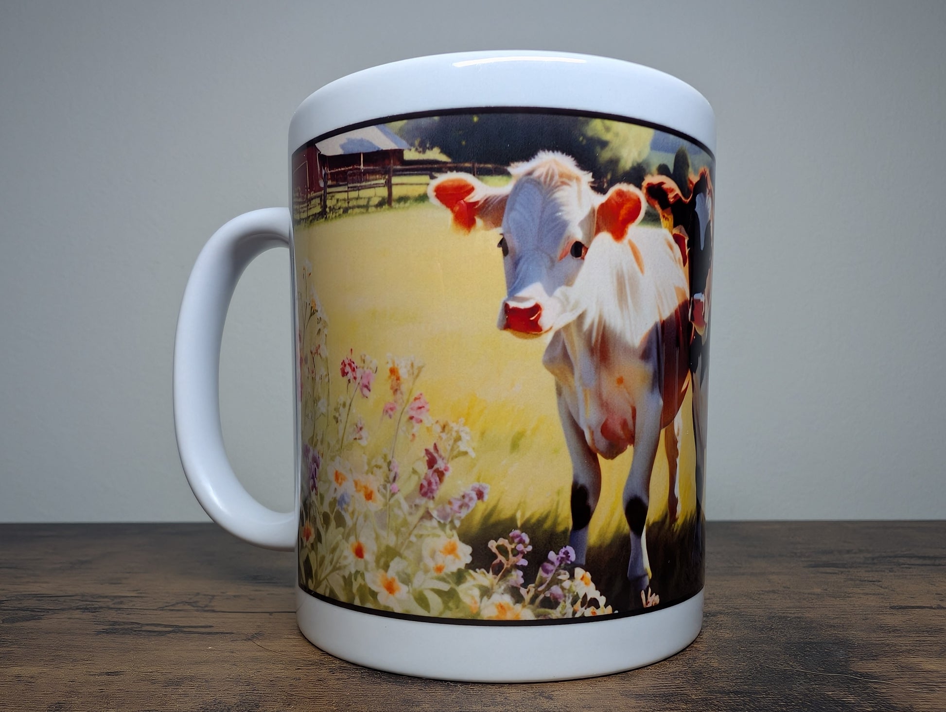 Enjoy a peaceful moment of pastoral beauty with the Blooming Bovines Mug, a perfect addition to your farmhouse collection or a thoughtful gift for someone special.