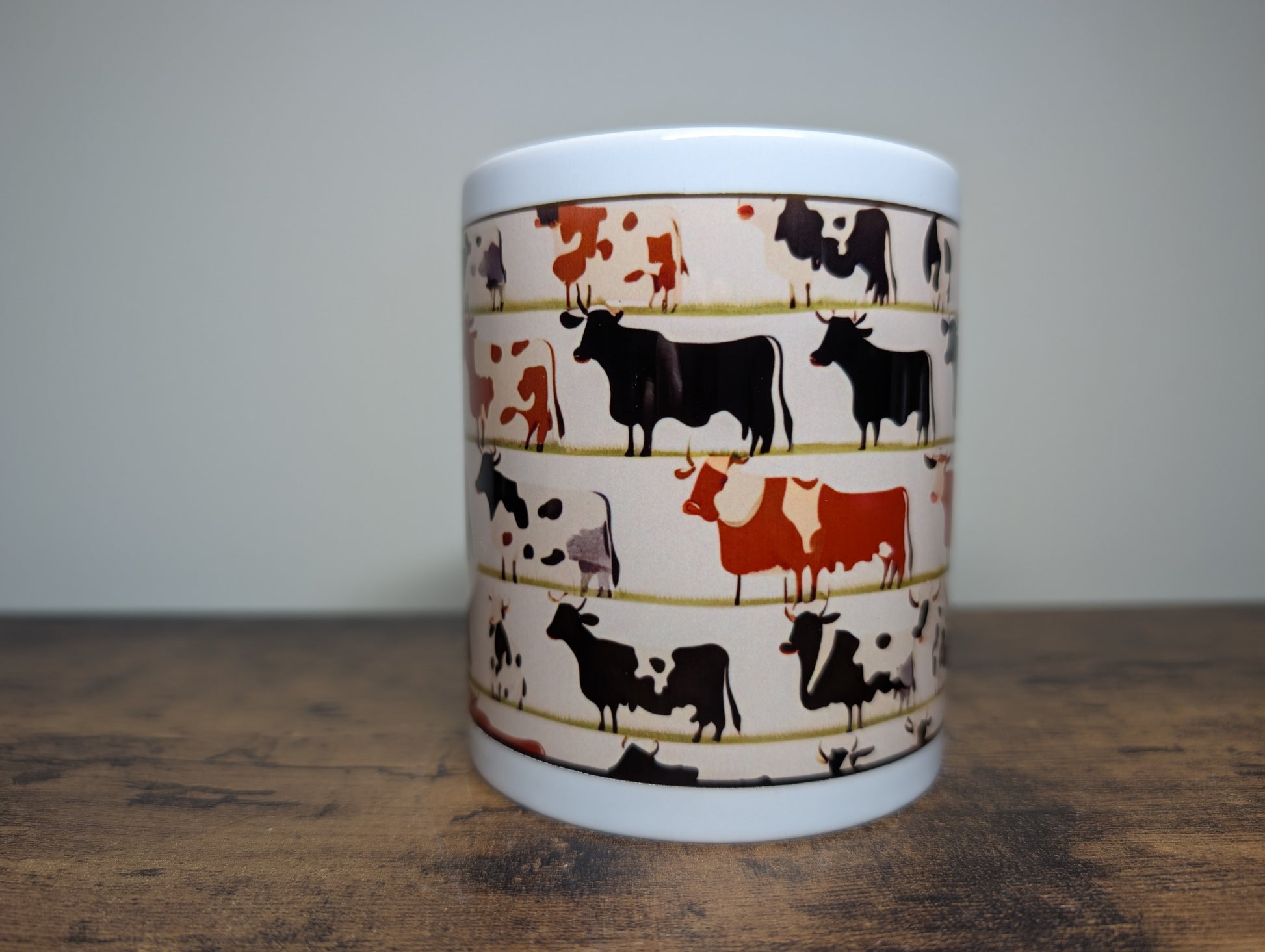 Step back in time with the Heritage Herd Mug, a unique piece inspired by ancient depictions and paintings of cows. This mug features a pattern that honors the rich history of farming and the enduring bond between humans and livestock. The design brings together timeless artistry with a rustic touch, offering a beautiful nod to the past while celebrating the charm of farm life.