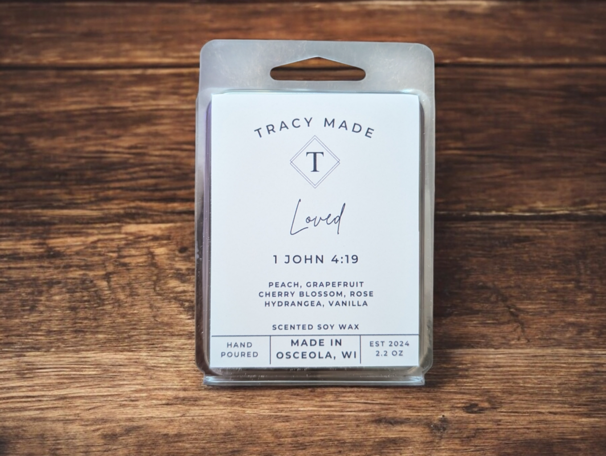 With a delicate yet uplifting blend of Peach, Grapefruit, Cherry Blossom, Rose, Hydrangea, and Vanilla, this harmonious scent offers a balanced bouquet of fruity freshness and floral elegance. Perfect for meditation, prayer, or moments of relaxation, the Loved Wax Melt serves as a gentle reminder of God's boundless love and care.